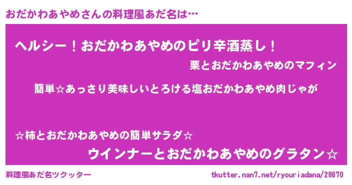 | ヘコむあだ名 | 『おだかわあやめ(震え声)』『なまこ酢』 |