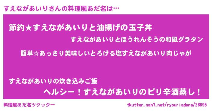 | ヘコむあだ名 | 『すえながあいり(苦笑)』『すえもー』 |
