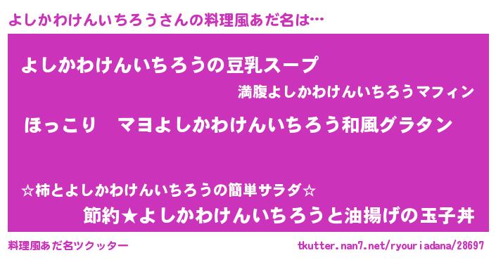 | 男性向けラノベタイトル風あだ名 | 『この素晴らしい世界によしかわけんいちろうを!』 |