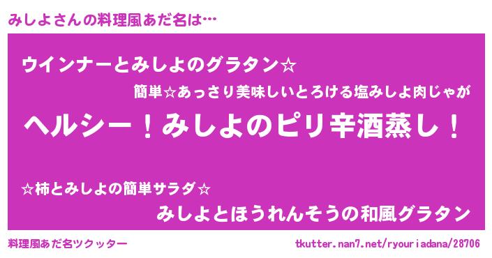 | ヘコむあだ名 | 『なまこ酢』『みしよ(笑)』 |
