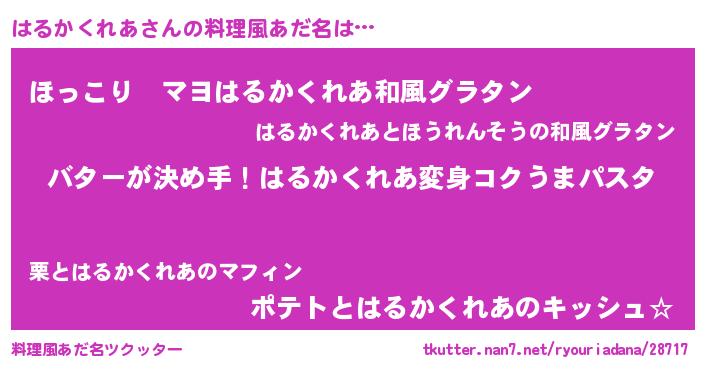 | 意味不明あだ名 | 『眠気覚ましガムはるかくれあ味』 |