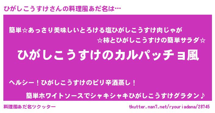 | 意味不明あだ名 | 『住所不定無職ひがしこうすけ(85歳)』 |