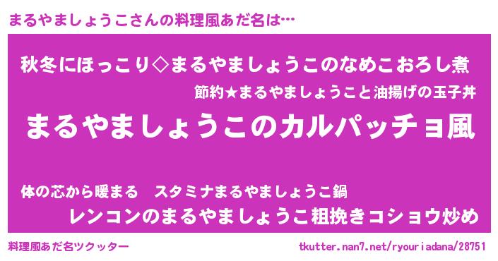 | 女子向けラノベタイトル風あだ名 | 『まるやましょうこが死なない童話 林檎のまるやましょうこの診療簿』 |