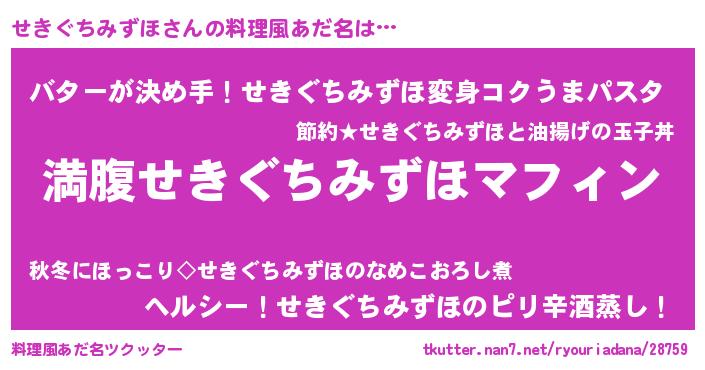 | 胡散臭い通販商品みたいなあだ名 | 『絶対に幸福をもたらす健康食品…その名も「せきぐちみずほ」』 |