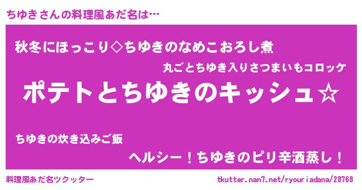 | 女子向けラノベタイトル風あだ名 | 『ちゆきの卵を拾いまして』 |