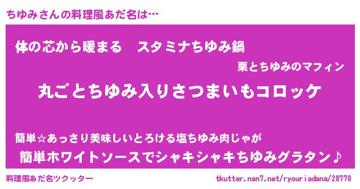 | 男性向けラノベタイトル風あだ名 | 『この素晴らしい世界にちゆみを!』 |