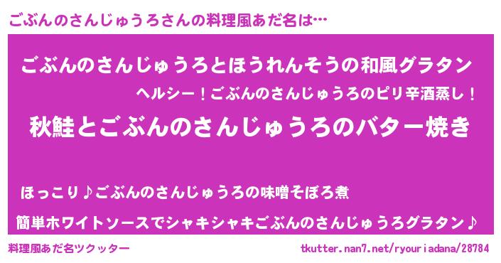 | 胡散臭い通販商品みたいなあだ名 | 『来世でも幸せになれる水素水…その名も「ごぶんのさんじゅうろ」』 |