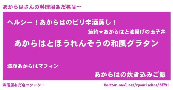 | 意味不明あだ名 | 『もやし科あからは属』『自称あからは』 |