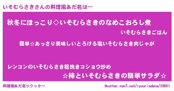 | ヘコむあだ名 | 『いそむらさき(笑)』『いそにゅー』 |