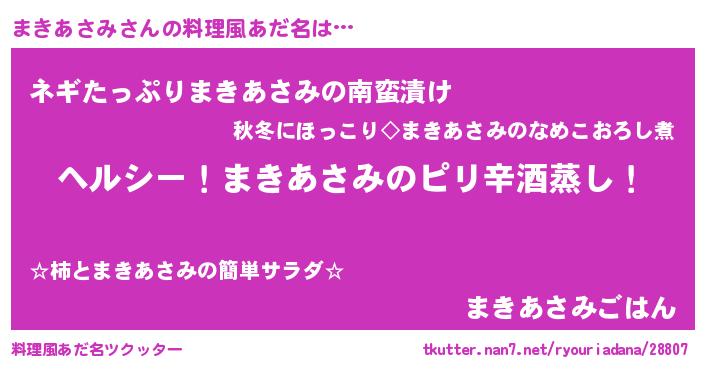 | 男性向けラノベタイトル風あだ名 | 『Re:まきあさみから始める異世界生活』 |