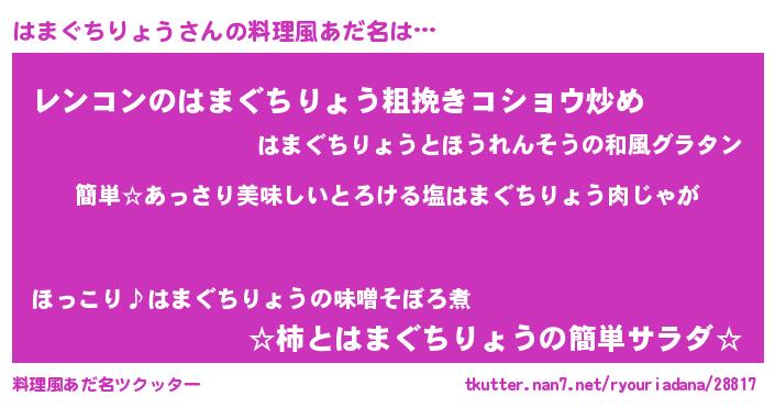 | 意味不明あだ名 | 『永久保存はまぐちりょう』 |