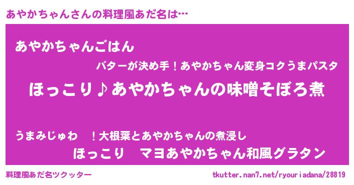 | 意味不明あだ名 | 『ペロリンあやかちゃん』 |