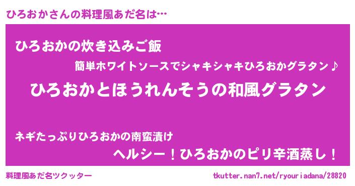 | 男性向けラノベタイトル風あだ名 | 『ひろおか~年齢イコール彼女いない歴の魔法使い~』 |