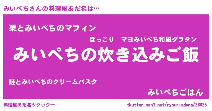 | ヒーロー風カッコイイあだ名 | 『仮面ミイダー』『友情の使者みいぺち』 |