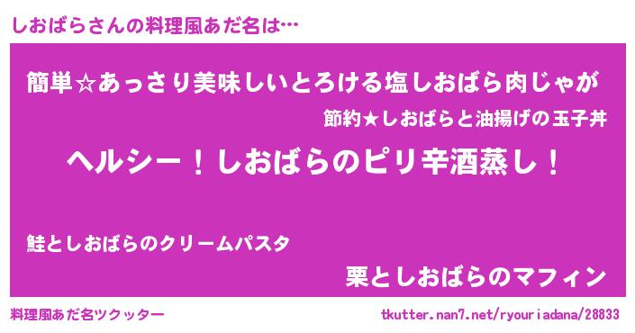 | 男性向けラノベタイトル風あだ名 | 『Re:しおばらから始める異世界生活』 |