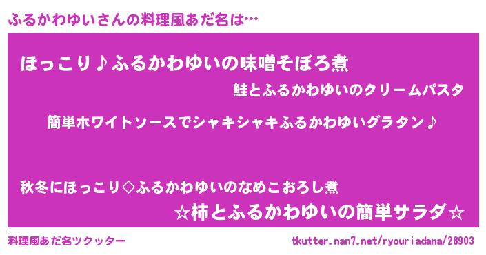 | 男性向けラノベタイトル風あだ名 | 『ふるかわゆいの嫁は女の子じゃないと思った?』 |
