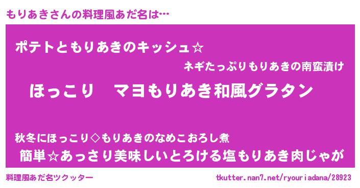 | 男性向けラノベタイトル風あだ名 | 『この素晴らしい世界にもりあきを!』 |