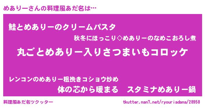| 意味不明あだ名 | 『住所不定無職めありー(85歳)』 |