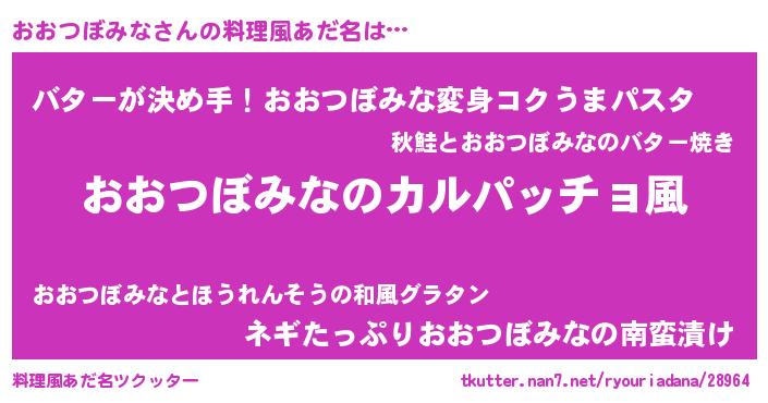 | 意味不明あだ名 | 『住所不定無職おおつぼみな(84歳)』 |