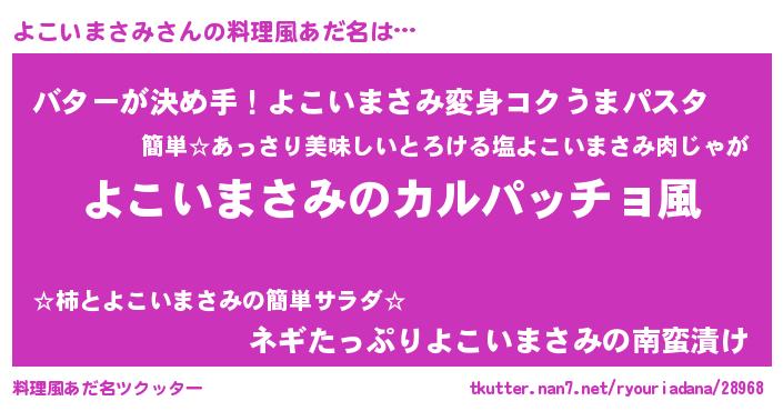| ヘコむあだ名 | 『よこにゅー』『よこいまさみ(笑)』 |