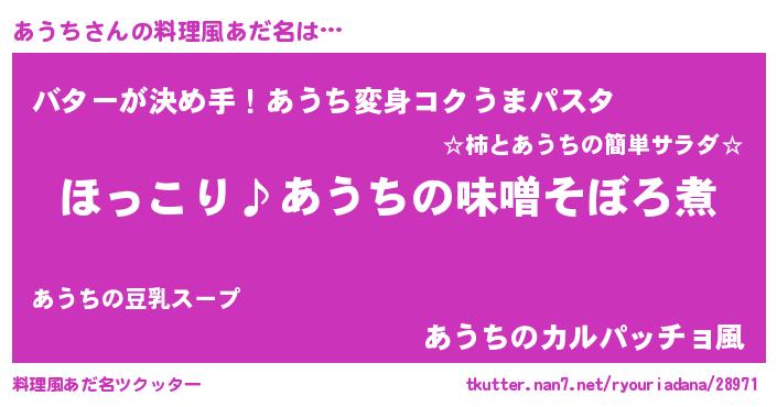 | 男性向けラノベタイトル風あだ名 | 『あうちの憂鬱』『魔弾の王とあうち』 |