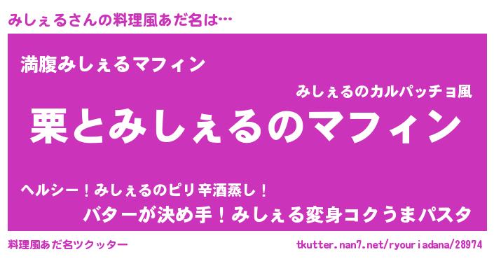 | 意味不明あだ名 | 『永久保存みしぇる』『自称みしぇる』 |