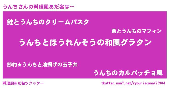 | ヒーロー風カッコイイあだ名 | 『慈愛の使者うんち』『仮面ウンダー』 |