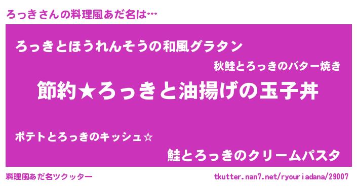 | ヘコむあだ名 | 『ろっにー』『ろっき(爆)』『ろっお』 |