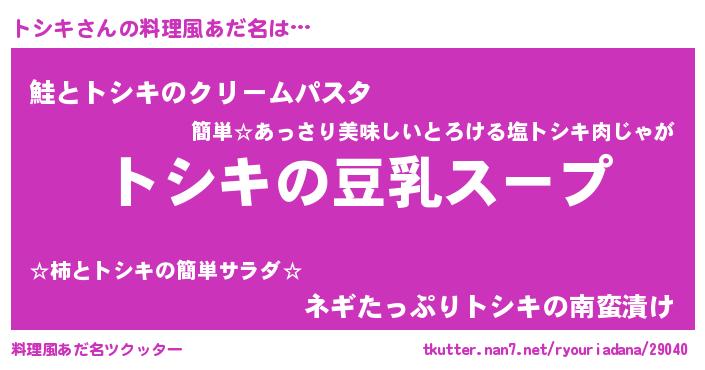 | ヘコむあだ名 | 『トシを』『トシにゅー』『豆乳』 |