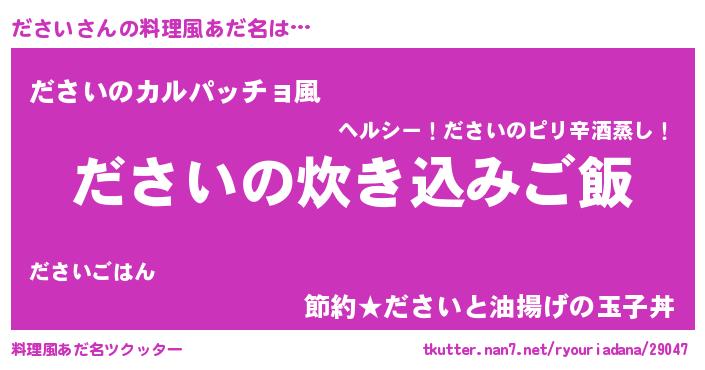 | 意味不明あだ名 | 『住所不定無職ださい(62歳)』『自称ださい』 |
