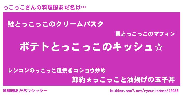 | 女子向けラノベタイトル風あだ名 | 『っこっこの卵を拾いまして』 |