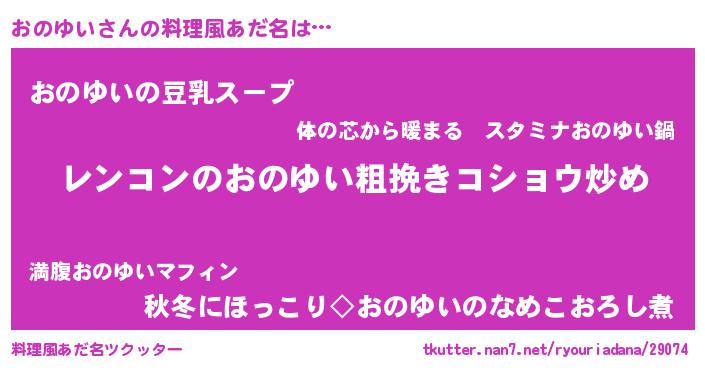 | 胡散臭い通販商品みたいなあだ名 | 『ガンによく効く高麗人参…その名も「おのゆい」』 |