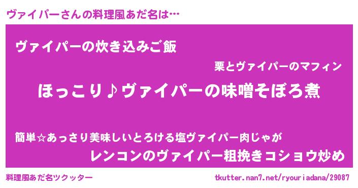 | 男性向けラノベタイトル風あだ名 | 『ヴァイパーの憂鬱』 |