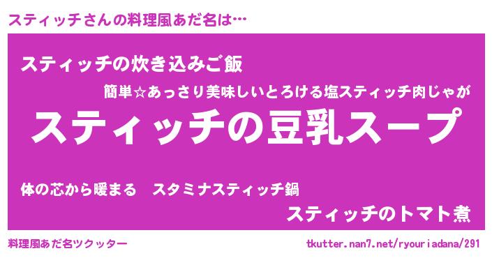 | 胡散臭い通販商品みたいなあだ名 | 『信頼と実績のサプリメント…その名も「スティッチ」』 |
