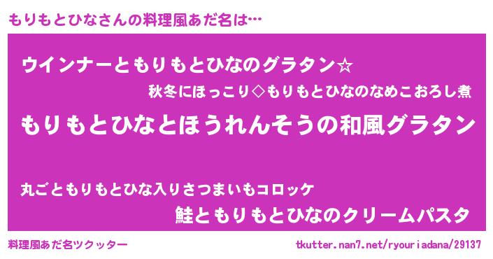 | ヘコむあだ名 | 『なまこ酢』『もりもとひな(笑)』 |