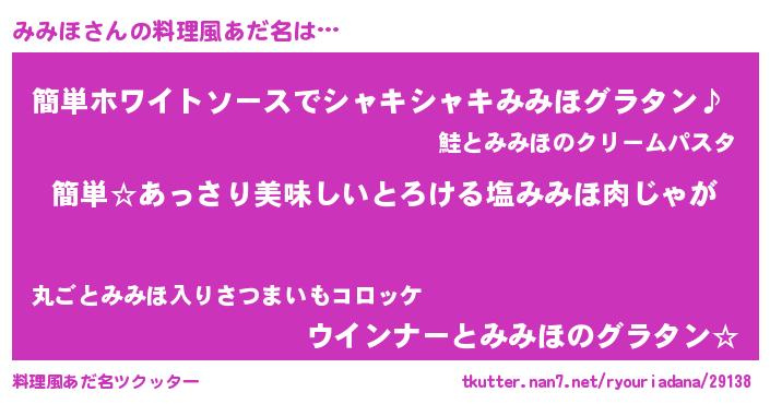 | ヘコむあだ名 | 『みみほ(笑)』『みみっぺ』 |