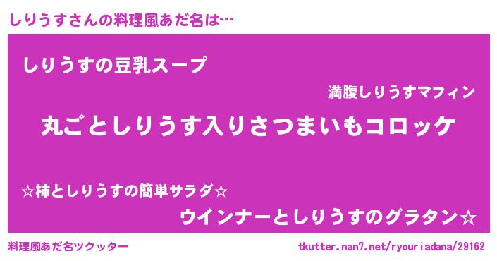 | 男性向けラノベタイトル風あだ名 | 『この素晴らしい世界にしりうすを!』 |