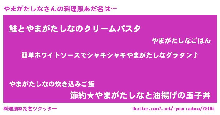 | ポケモン風あだ名 | 『ヒヤマガタシナ』『ヤックウザ』 |