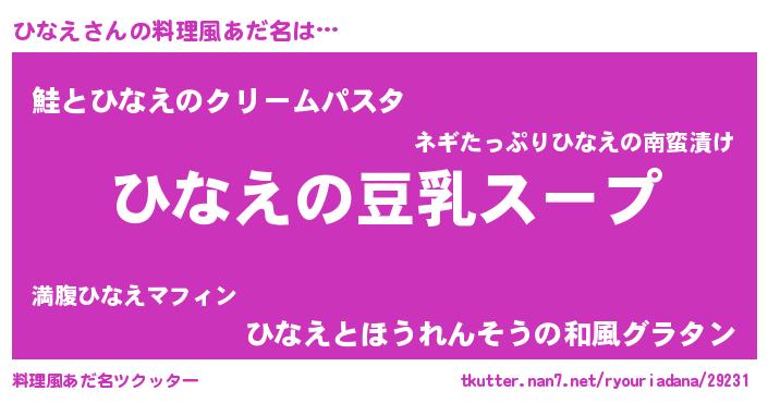 | 胡散臭い通販商品みたいなあだ名 | 『信頼と実績のサプリメント…その名も「ひなえ」』 |