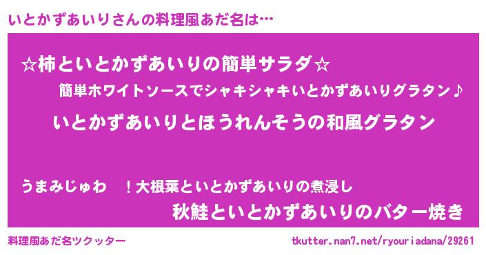 | ヘコむあだ名 | 『いとかずあいり(笑)』『いとを』 |