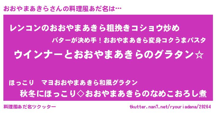 | ヘコむあだ名 | 『なまこ酢』『おおやまあきら(苦笑)』 |