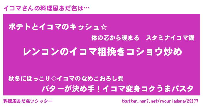 | 女子向けラノベタイトル風あだ名 | 『イコマアンティーク』『イコマ恋絵巻』 |