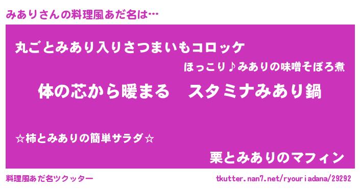 | 意味不明あだ名 | 『みありフォーエバー』『ペロリンみあり』 |