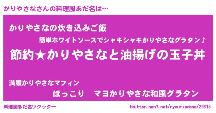 | 意味不明あだ名 | 『ペロリンかりやさな』『自称かりやさな』 |