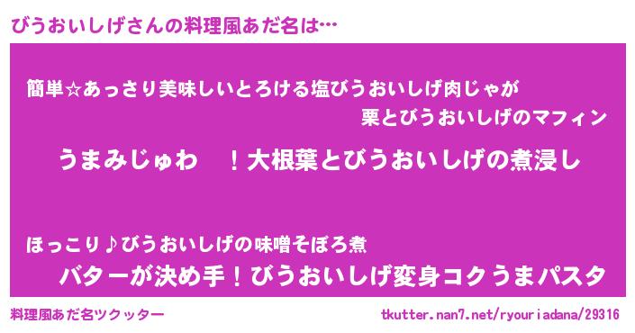 | 欧米人風あだ名 | 『びうおいしげクリステル』 |