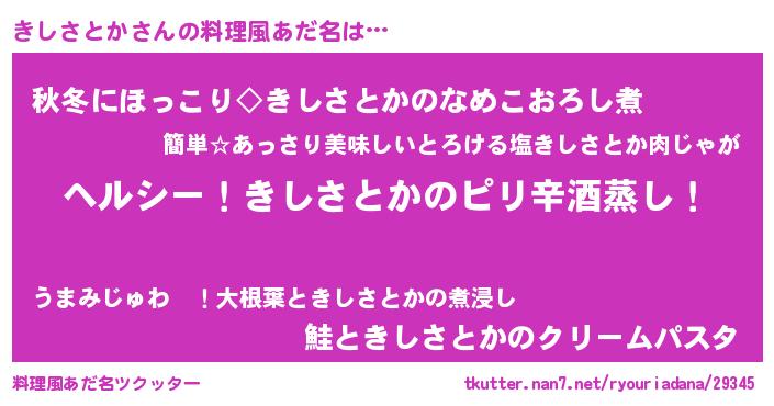 | 男性向けラノベタイトル風あだ名 | 『Re:きしさとかから始める異世界生活』 |