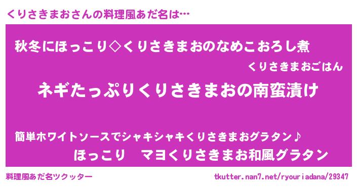 | 恥ずかしいあだ名 | 『プリティーくりさきまお』『くりちん』 |