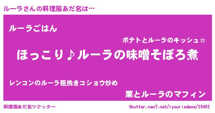 | 男性向けラノベタイトル風あだ名 | 『ルーラの憂鬱』『ルーラスレイヤー』 |