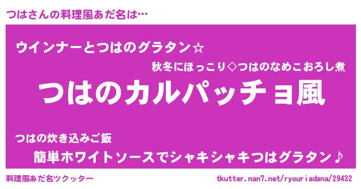 | ヒーロー風カッコイイあだ名 | 『仮面ツハダー』『ウルトラつはマン』 |