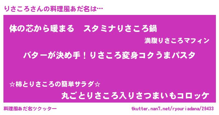 | ヘコむあだ名 | 『なまこ酢』『りさころ(笑)』 |